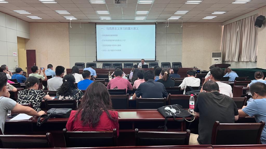 在授課中,張木指出,馬克思主義揭示了人類社會(huì)的發(fā)展規(guī)律,是認(rèn)識(shí)世界、改造世界的科學(xué)真理。百年以來,中國共產(chǎn)黨堅(jiān)持把馬克思主義寫在自己的旗幟上,不斷推進(jìn)馬克思主義中國化時(shí)代化,用博大胸懷吸收人類創(chuàng)造的一切優(yōu)秀文明成果,用馬克思主義中國化的科學(xué)理論引領(lǐng)偉大實(shí)踐。張木從馬克思主義產(chǎn)生的歷史背景、解決的基本問題以及馬克思主義理論的三大體系、鮮明特征、學(xué)習(xí)方法、馬克思主義政治經(jīng)濟(jì)學(xué)等方面,詳細(xì)講授了馬克思主義的基本原理,指出學(xué)習(xí)馬克思主義是我們終生的事業(yè),要深入學(xué)、系統(tǒng)學(xué)、反復(fù)學(xué)、了然于胸學(xué)、學(xué)用結(jié)合學(xué),將馬克思主義作為人生的指南。張木最后強(qiáng)調(diào),習(xí)近平新時(shí)代中國特色社會(huì)主義思想是當(dāng)代中國馬克思主義、二十一世紀(jì)馬克思主義,是中華文化和中國精神的時(shí)代精華。當(dāng)代青年學(xué)習(xí)和實(shí)踐馬克思主義,最根本的就是要自覺以習(xí)近平新時(shí)代中國特色社會(huì)主義思想鑄魂立德。