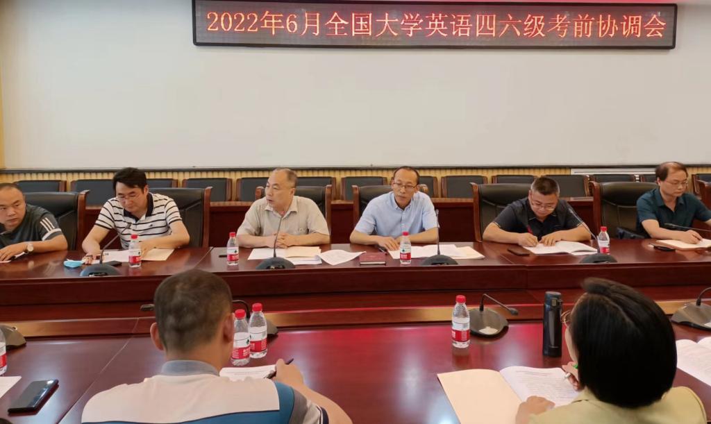 為確保本次考試工作的順利進(jìn)行,6月6日上午在鄠邑校區(qū),學(xué)校專門召開了2022年上半年全國大學(xué)英語四六級考試工作協(xié)調(diào)會(huì)。陳軍斌在會(huì)上強(qiáng)調(diào),四六級考試是國家級考試,各部門要高度重視,認(rèn)真履行工作職責(zé),強(qiáng)化責(zé)任意識(shí),保證考試順利進(jìn)行。他對本次四六級組考工作提出具體要求,一是要認(rèn)真做好考前準(zhǔn)備工作,嚴(yán)格監(jiān)考教師資格審查及請假制度,杜絕臨時(shí)代監(jiān)考行為,做好監(jiān)考教師的培訓(xùn)和考務(wù)工作安排,確保工作人員熟悉規(guī)則;二是采取有效措施,確保安全保密工作萬無一失,做好試卷保密和交接工作,加強(qiáng)監(jiān)督;三是懲防并重,嚴(yán)肅考風(fēng)考紀(jì),杜絕舞弊事件的發(fā)生;四是加強(qiáng)考試環(huán)境綜合治理,檢查語音設(shè)備并排查信號(hào)盲區(qū),確保聽力考試順利進(jìn)行;五是要扎實(shí)落實(shí)疫情防控要求,做好應(yīng)急預(yù)案,嚴(yán)格落實(shí)防疫工作職責(zé)。