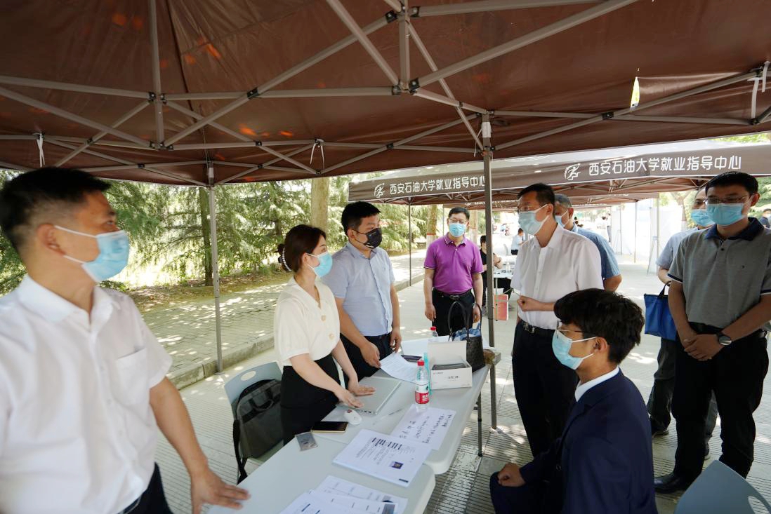 6月1日上午,由陜西省人力資源和社會(huì)保障廳、陜西省國(guó)有資產(chǎn)監(jiān)督管理委員會(huì)、陜西廣電融媒體集團(tuán)主辦,陜西省人才交流服務(wù)中心、西安石油大學(xué)承辦的“公共就業(yè)服務(wù)進(jìn)校園——省屬國(guó)企穩(wěn)就業(yè)高校畢業(yè)生專項(xiàng)招聘會(huì)”在我校鄠邑校區(qū)舉行,陜西延長(zhǎng)石油集團(tuán)、陜煤彬長(zhǎng)煤礦、西北有色集團(tuán)713總隊(duì)有限公司等18家省內(nèi)重點(diǎn)企業(yè)參會(huì)。陜西省人力資源和社會(huì)保障廳副廳長(zhǎng)井海濱、就業(yè)促進(jìn)處處長(zhǎng)王曉龍、陜西省人才交流服務(wù)中心畢業(yè)生部部長(zhǎng)李陽(yáng)蒞臨現(xiàn)場(chǎng)視察指導(dǎo)工作。校黨委副書記張木、相關(guān)職能部門負(fù)責(zé)同志現(xiàn)場(chǎng)陪同。