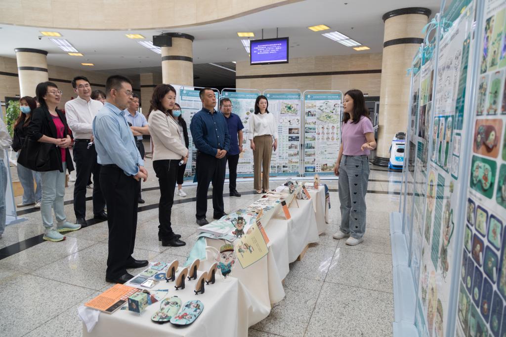 同學(xué)們在各自展位前向與會(huì)領(lǐng)導(dǎo)詳細(xì)介紹了自己的創(chuàng)作理念和研究方法,從設(shè)計(jì)角度探索開展能源礦區(qū)景觀活化再生設(shè)計(jì)、非物質(zhì)文化遺產(chǎn)保護(hù)與傳承、民俗民藝拓展應(yīng)用等實(shí)踐研究工作,得到了大家的肯定和贊揚(yáng)。