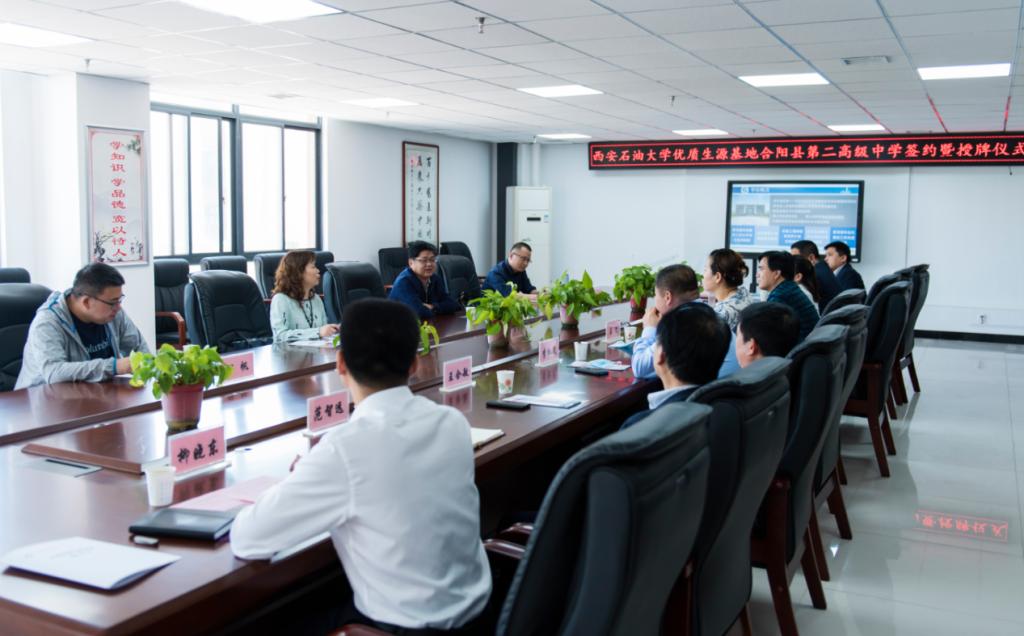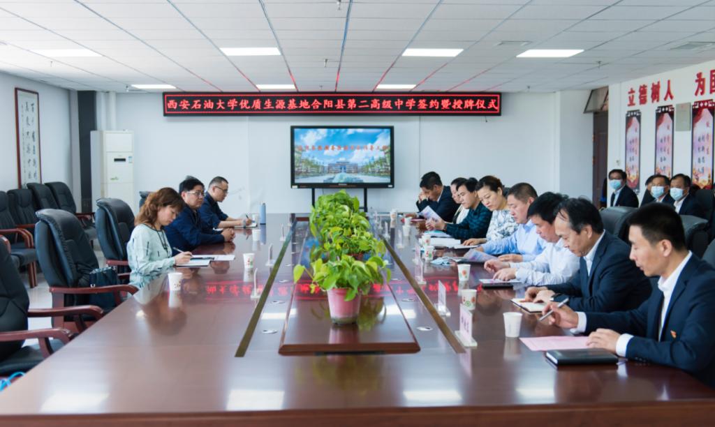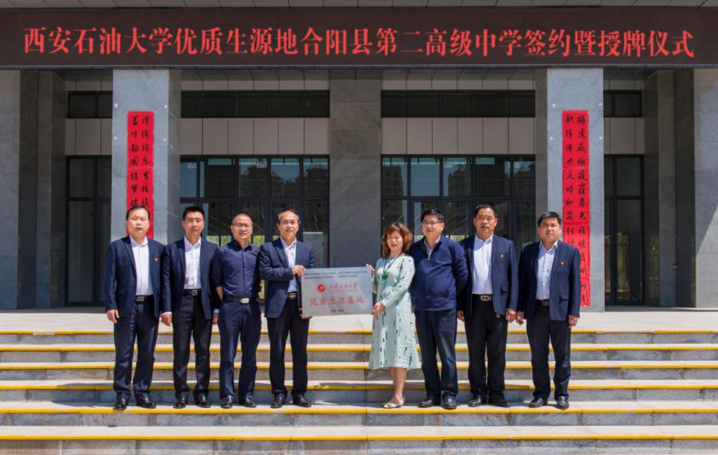 會(huì)上,雙方簽訂了“西安石油大學(xué)優(yōu)秀生源基地”協(xié)議書,王君萍代表學(xué)校向合陽縣第二高級(jí)中學(xué)授牌。