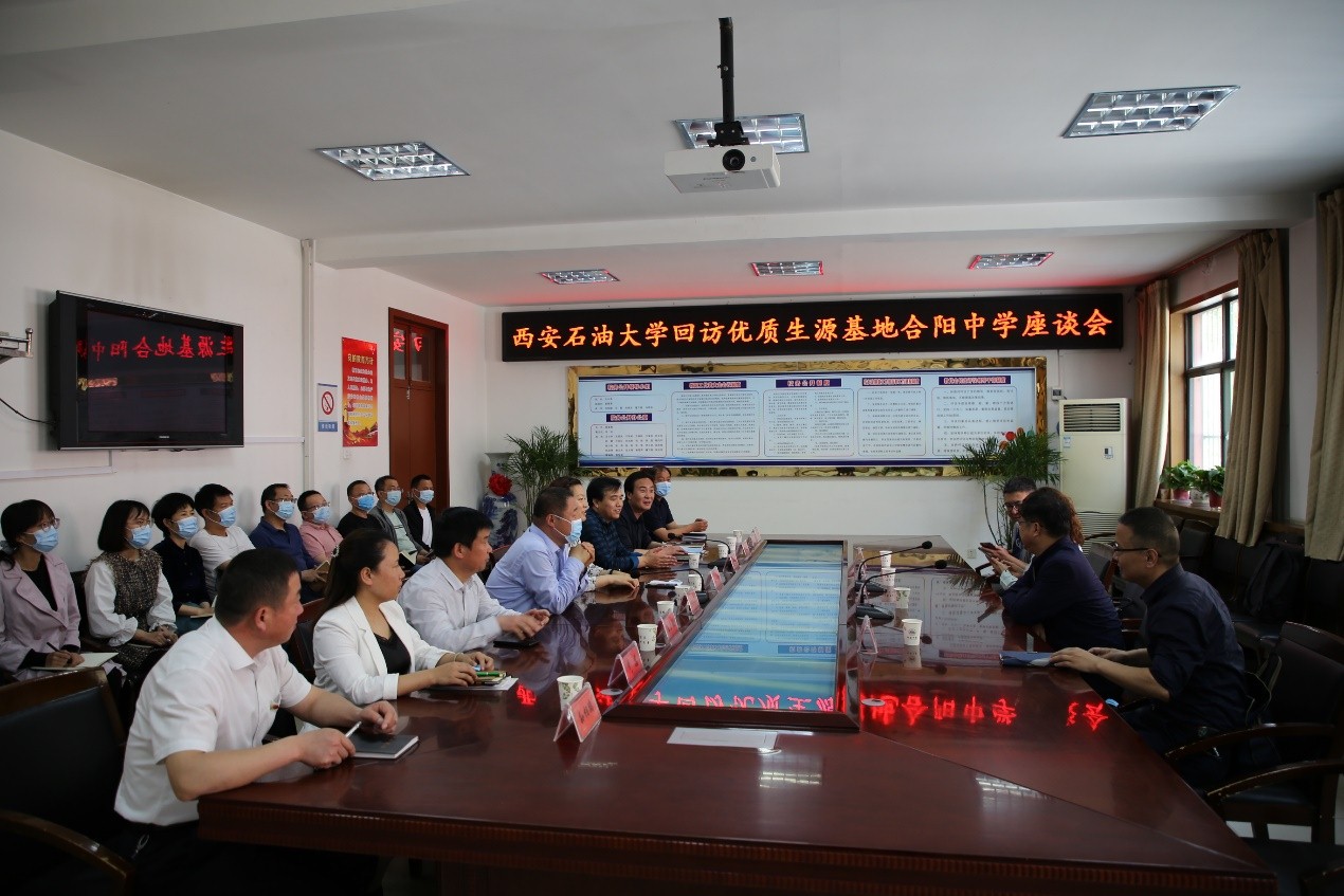 當(dāng)日上午,在合陽縣第二高級(jí)中學(xué),合陽縣委常委、政法委書記李紅武,縣委常委、副縣長王改,縣教育局局長魯建春,合陽縣第二高級(jí)中學(xué)校長范智遠(yuǎn)等領(lǐng)導(dǎo)出席了簽約儀式。座談會(huì)上,樊曉民介紹了我校的歷史沿革、學(xué)科專業(yè)、院系設(shè)置、師資隊(duì)伍以及科研業(yè)績(jī)等內(nèi)容,著重強(qiáng)調(diào)了我校的辦學(xué)特色和優(yōu)勢(shì)學(xué)科,希望雙方今后能夠加強(qiáng)交流,在生源引育上合作共贏。王君萍介紹了我校在學(xué)生就業(yè)方面的經(jīng)驗(yàn),以及經(jīng)濟(jì)管理學(xué)院相關(guān)專業(yè)所取得的突出成績(jī),希望通過交流讓更多的學(xué)生了解西安石油大學(xué)。