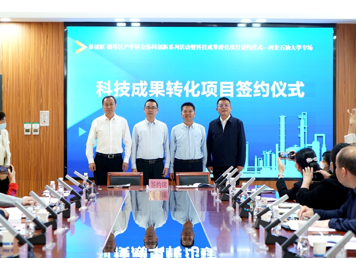 2022年4月25日,我校與雁塔區(qū)人民政府、西安市科學(xué)技術(shù)局聯(lián)合主辦的“秦創(chuàng)原·雁塔區(qū)產(chǎn)學(xué)研金協(xié)同創(chuàng)新系列活動(dòng)暨科技成果轉(zhuǎn)化項(xiàng)目簽約儀式—西安石油大學(xué)專場(chǎng)”在雁塔區(qū)政務(wù)服務(wù)中心隆重舉行。張榮軍副校長(zhǎng)出席活動(dòng),學(xué)??萍继庁?fù)責(zé)人及科研教師代表參加活動(dòng)。