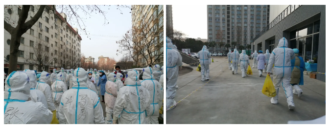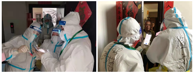 清晨7:30,樓長和單元長經(jīng)過必要的防疫知識培訓(xùn),穿好防護(hù)服,帶領(lǐng)醫(yī)護(hù)人員來到各自負(fù)責(zé)的家屬樓,挨家挨戶敲門、掃碼、協(xié)助核酸檢測,逐一記錄。