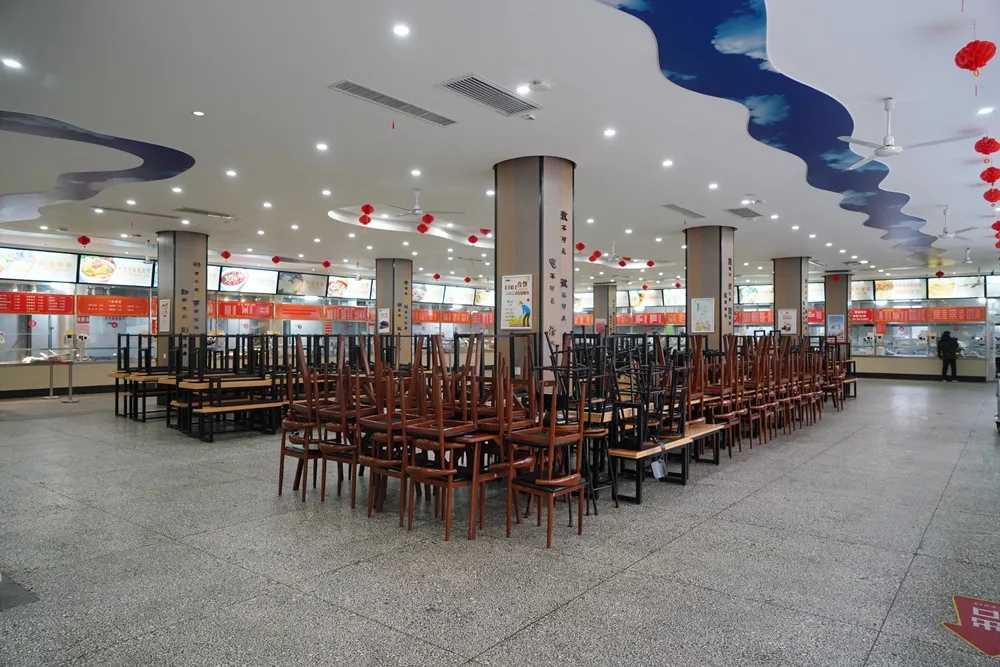 科學(xué)制定、動(dòng)態(tài)調(diào)整就餐方案,除集中保潔消殺時(shí)段,兩校區(qū)校園餐廳加強(qiáng)供應(yīng),每餐每個(gè)宿舍指派一人前來取餐,禁止堂食。