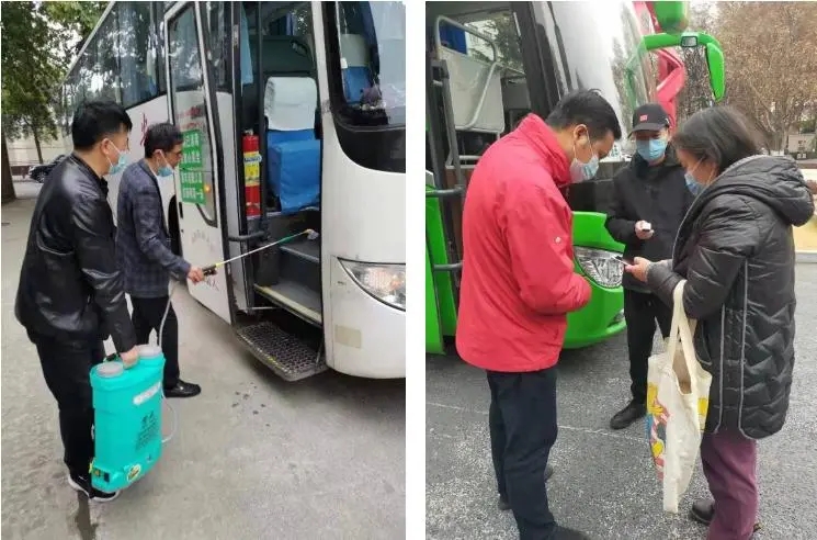 通勤班車人員進(jìn)行車輛消殺、執(zhí)行乘車人員測(cè)溫和核查措施