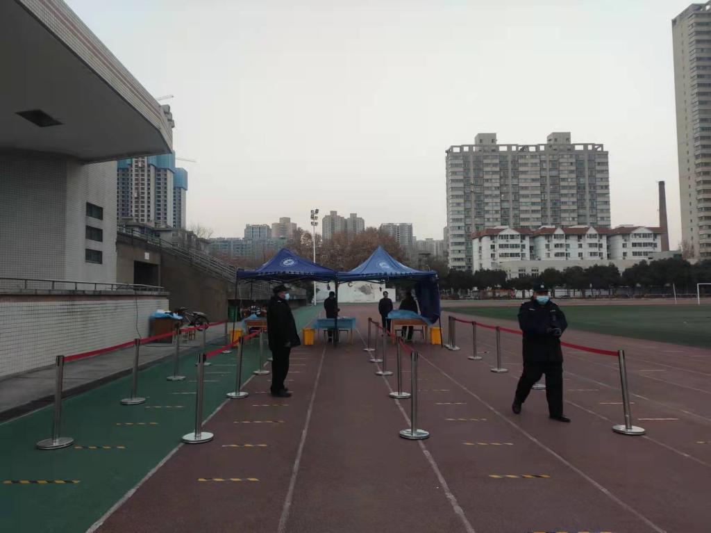 封閉大門、嚴格管控的同時,全力配合學校開展全員核酸檢測工作。抽調(diào)骨干隊員和門崗下班的保衛(wèi)干部繼續(xù)到核酸檢測現(xiàn)場執(zhí)行安保工作。開展核酸檢測通道設(shè)置、“一米線”粘貼、秩序維護等一系列工作,確保核酸檢測現(xiàn)場安全、有序。截止12月30日,已順利完成了我校第十輪核酸檢測安保任務(wù)。在核酸檢測點入口處,執(zhí)勤干部、隊員發(fā)現(xiàn)異常情況,及時報學校疫情防控辦進行處置。