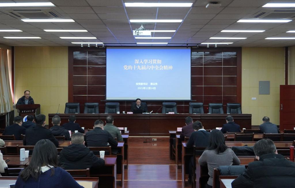 12月14日下午,我校學(xué)習(xí)貫徹黨的十九屆六中全會(huì)精神宣講會(huì)在雁塔校區(qū)會(huì)議中心第五會(huì)議室舉行,校黨委書(shū)記賽云秀進(jìn)行專題宣講。黨委各部(辦)、工會(huì)、團(tuán)委等部門負(fù)責(zé)人,機(jī)關(guān)、教輔各單位綜合業(yè)務(wù)科室負(fù)責(zé)人及各院(系)綜合辦公室主任參加了宣講會(huì)。