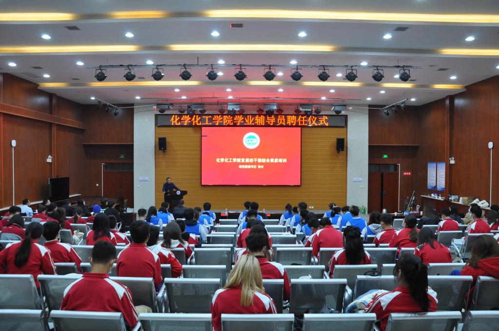 為深入貫徹落實(shí)《中共西安石油大學(xué)委員會關(guān)于進(jìn)一步加強(qiáng)本科生班級建設(shè)的實(shí)施意見》(西石大黨生〔2021〕42號)精神,構(gòu)建本科生“三位一體”學(xué)風(fēng)建設(shè)協(xié)同育人體系,11月29日晚,化學(xué)化工學(xué)院在鄠邑校區(qū)崇文樓就業(yè)指導(dǎo)中心多功能廳舉辦學(xué)業(yè)輔導(dǎo)員聘任儀式暨班干部綜合素質(zhì)培訓(xùn)大會。校黨委副書記張木出席,學(xué)生工作部部長王亮,學(xué)生工作部副部長樊曉旭,化學(xué)化工學(xué)院黨委副書記祁帆參加聘任儀式。儀式由化學(xué)化工學(xué)院學(xué)工辦主任周鈺桐主持。