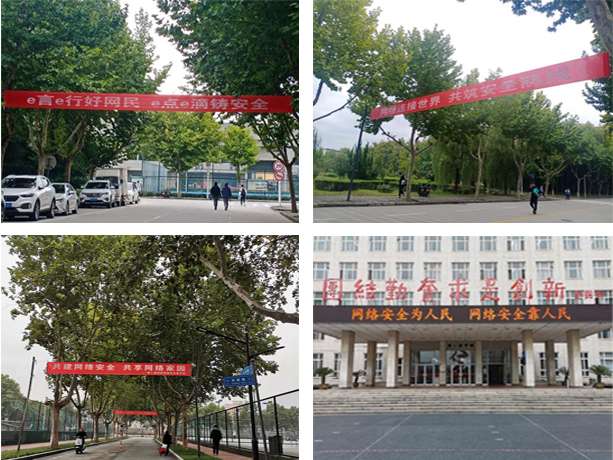 安全周期間,學(xué)校在雁塔校區(qū)和鄠邑校區(qū)主干道懸掛了網(wǎng)絡(luò)安全宣傳周宣傳條幅,在LED大屏上輪播宣傳標(biāo)語,并在門戶網(wǎng)站添加了網(wǎng)絡(luò)安全宣傳周宣傳大圖,加強網(wǎng)絡(luò)安全宣傳力度,營造網(wǎng)絡(luò)安全宣傳教育氛圍。