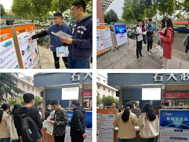 10月12日,學(xué)校下發(fā)了《關(guān)于積極參與2021年國家網(wǎng)絡(luò)安全宣傳周校園日活動的通知》,號召全校師生積極參與2021年國家網(wǎng)絡(luò)安全宣傳周校園日系列活動。校園活動日當(dāng)天,學(xué)校分別在雁塔校區(qū)和鄠邑校區(qū)校車乘車點、食堂等人流量大的區(qū)域放置展板,發(fā)放布袋、知識手冊等多種宣傳資料千余份,發(fā)送網(wǎng)絡(luò)安全宣傳短信4000余條。