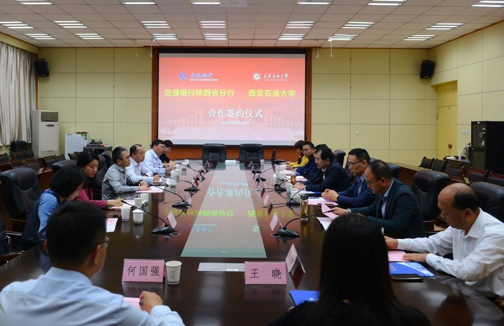 9月30日下午,我校與交通銀行陜西省分行簽署“十四五”期間戰(zhàn)略合作協(xié)議,簽約儀式在我校雁塔校區(qū)第一會議室舉行。交通銀行陜西省分行副行長蔣安祎一行六人,我校校長李天太、總會計師樊曉民出席簽約儀式。簽約儀式由校黨委副書記雷西合主持。