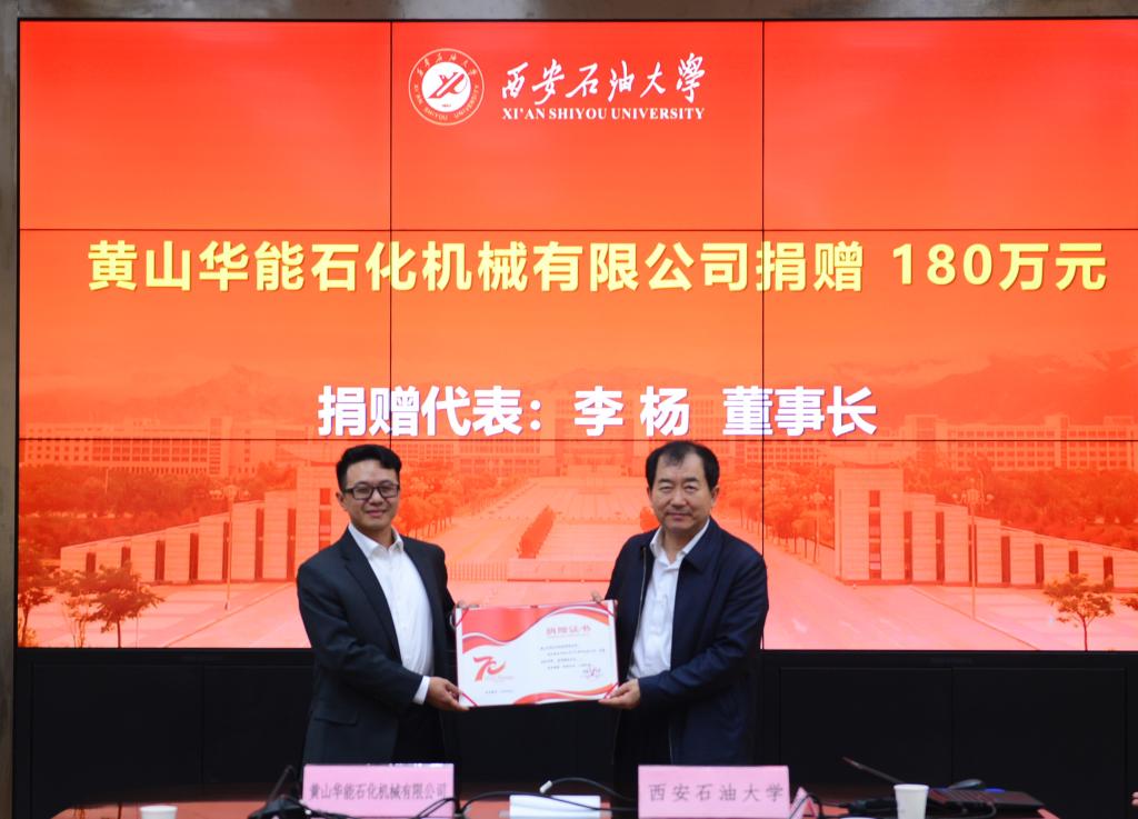 李天太校長(zhǎng)對(duì)李楊董事長(zhǎng)一行表示熱烈歡迎,對(duì)李楊校友一直以來(lái)對(duì)學(xué)校建設(shè)發(fā)展的關(guān)心與大力支持表示感謝。他簡(jiǎn)要介紹了學(xué)校的辦學(xué)歷史和發(fā)展近況,以及對(duì)新能源、新材料、人工智能等發(fā)展展望。李校長(zhǎng)表示,黃山華能石化機(jī)械有限公司長(zhǎng)期以來(lái)與學(xué)校保持著良好的合作關(guān)系,時(shí)值學(xué)校70年校慶能慷慨捐贈(zèng)助力學(xué)校建設(shè)發(fā)展,充分表達(dá)了對(duì)母校的關(guān)心關(guān)愛(ài)和支持,為學(xué)校事業(yè)發(fā)展增添了動(dòng)力和活力。他希望黃山華能石化機(jī)械有限公司能以此為契機(jī),進(jìn)一步加強(qiáng)與學(xué)校的合作交流,一如既往地支持學(xué)校的建設(shè)發(fā)展,同時(shí)推動(dòng)雙方在石油鉆采自動(dòng)化、數(shù)字化設(shè)備及控制系統(tǒng)、工業(yè)智能設(shè)備、環(huán)保設(shè)備等多領(lǐng)域的合作。