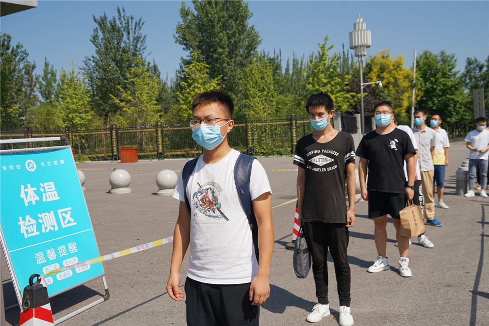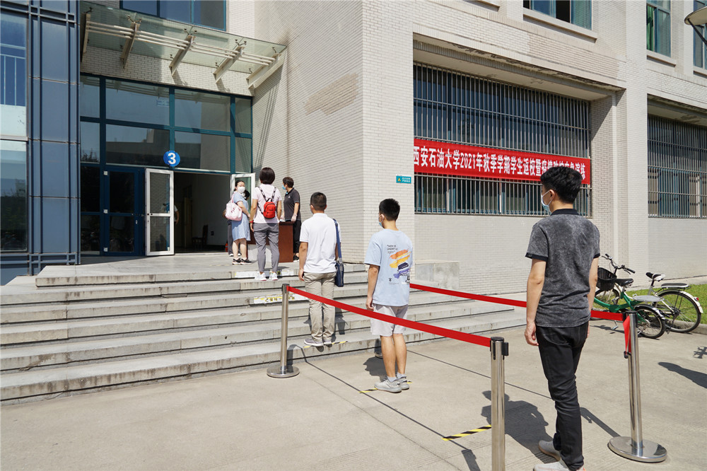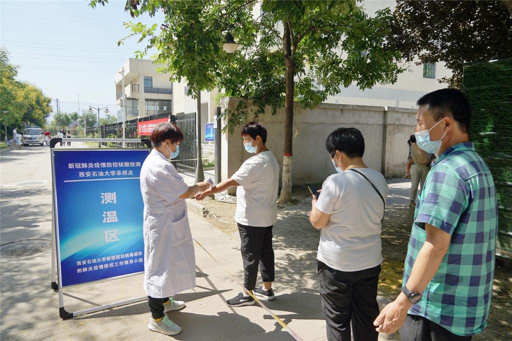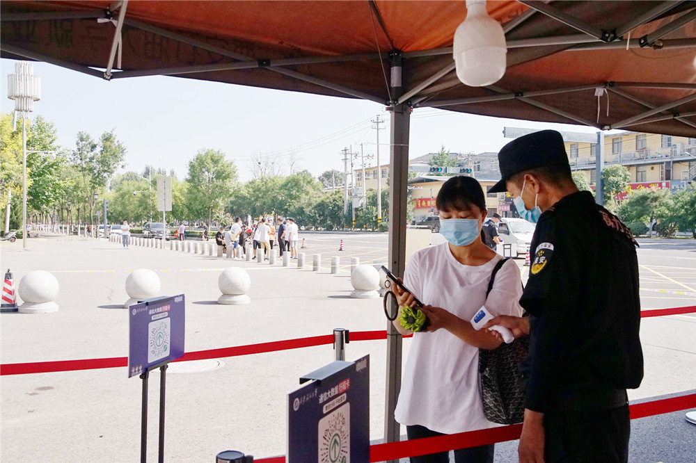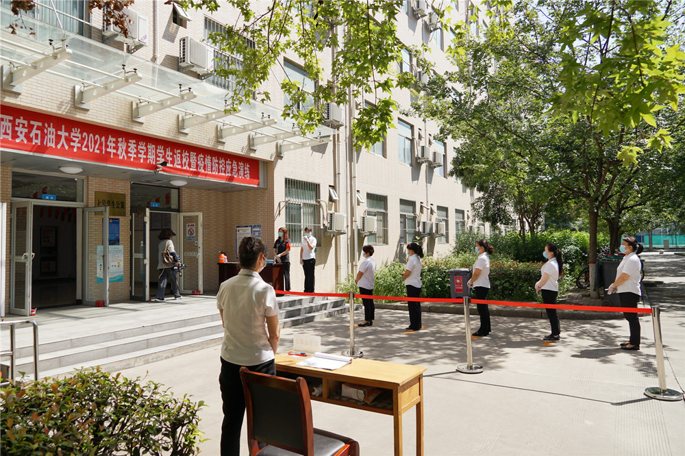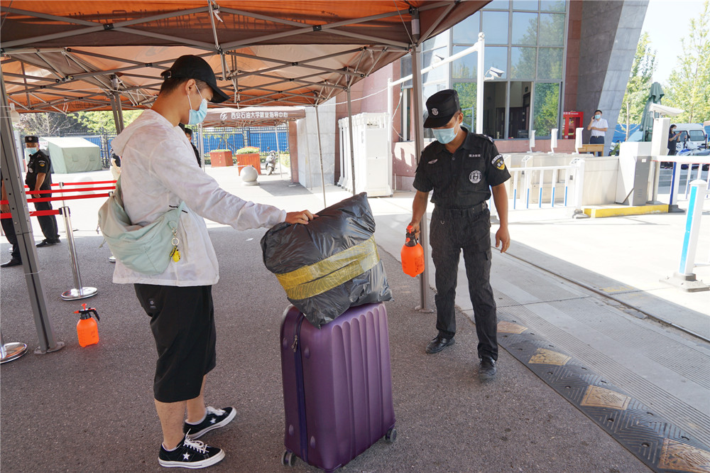 在鄠邑校區(qū)東門演練現(xiàn)場,返校學(xué)生按照地面標線,間隔一米有序排隊準備入校,在工作人員引導(dǎo)下間隔1米有序排隊接受進校檢查,經(jīng)過工作人員引導(dǎo)、體溫檢測、身份核驗和健康碼、大數(shù)據(jù)行程碼查驗、行李消毒等程序后有序安全入校。對健康碼顯示“黃碼”或“紅碼”以及體溫出現(xiàn)“異?!钡耐瑢W(xué),工作人員迅速分隔第一現(xiàn)場,疏散周圍人群,將該學(xué)生帶至臨時留觀點再次復(fù)核,仍顯示異常者,立即啟動應(yīng)急處置。