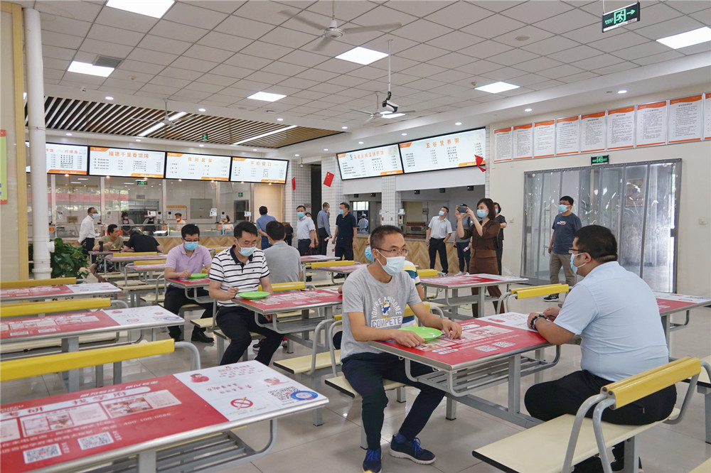 在教學(xué)樓,模擬演練了學(xué)生出入教學(xué)樓、課間出入教室以及學(xué)生出現(xiàn)發(fā)熱等異常癥狀的應(yīng)急處置。在食堂,按照錯時用餐、快速取餐、間隔就餐的要求,模擬演練學(xué)生在食堂門口間隔一米排隊測溫、洗手取餐、間隔用餐到餐后離開食堂等環(huán)節(jié)。在學(xué)生公寓,模擬演練學(xué)生在公寓樓門口間隔1米排隊測溫、核驗證件并按照指定路線出入公寓樓以及學(xué)生出現(xiàn)發(fā)熱等異常癥狀的應(yīng)急處置。在校醫(yī)院,全員核酸應(yīng)急演練現(xiàn)場,模擬演練了場地布置、人員組織、現(xiàn)場管控、一米排隊掃碼測溫、信息采集、采樣、標本轉(zhuǎn)運等工作環(huán)節(jié)。