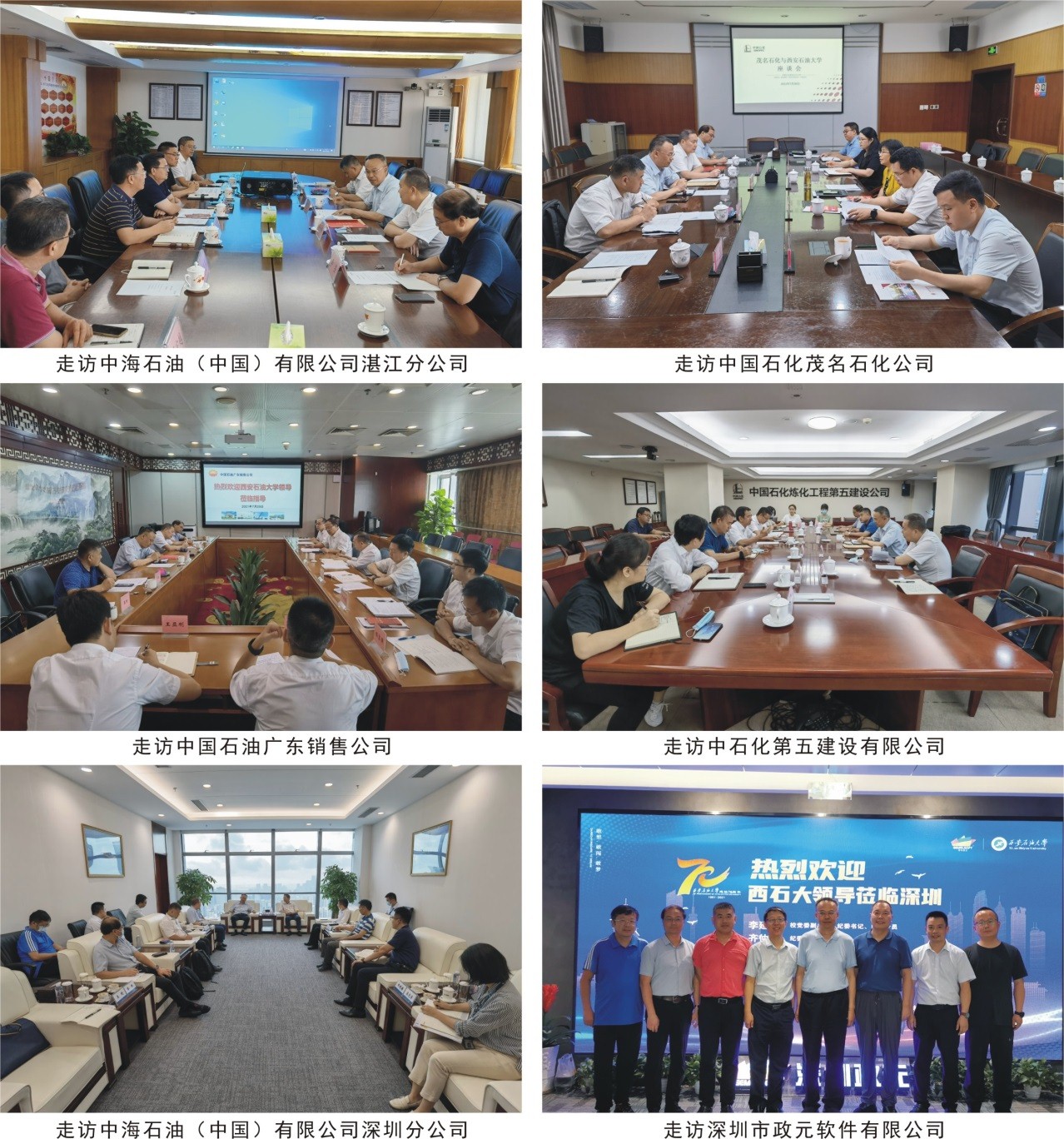 7月26日至8月1日,校黨委副書記、紀(jì)委書記、監(jiān)察專員李延平帶隊(duì)先后走訪了中海石油(中國)有限公司湛江分公司、中國石化茂名石化公司、中國石油廣東銷售公司、中國石化第五建設(shè)有限公司、中海石油(中國)有限公司深圳分公司、深圳市政元軟件有限公司(校友企業(yè))等6家企業(yè)。