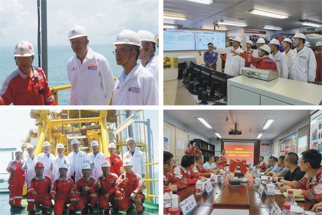 此次走訪中,李書記一行特赴中海油湛江分公司南海潿洲12-1油田的四個(gè)連體作業(yè)平臺(tái)進(jìn)行參觀調(diào)研,深入中海油作業(yè)一線了解生產(chǎn)情況,看望慰問我校畢業(yè)生,鼓勵(lì)他們發(fā)揚(yáng)鐵人精神,扎實(shí)努力工作,實(shí)現(xiàn)人生夢想。