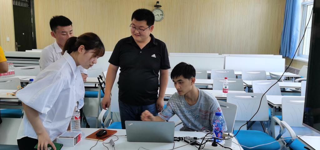 會(huì)后,相關(guān)職能部門緊急部署安排,于13:30到達(dá)鄠邑校區(qū)智慧教室搭建比賽平臺、調(diào)試比賽設(shè)備,項(xiàng)目指導(dǎo)老師一并到達(dá)賽場對項(xiàng)目進(jìn)行賽前指導(dǎo)。機(jī)械工程學(xué)院黨委副書記、輔導(dǎo)員代表學(xué)院前來現(xiàn)場為參賽團(tuán)隊(duì)加油鼓勵(lì)并送來礦泉水等物資。