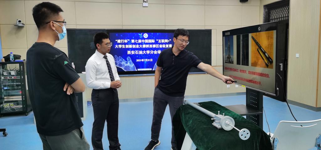 主賽道路演答辯于19:20正式開始,我校由機(jī)械工程學(xué)院馮亞洲、李萬鐘、劉戰(zhàn)鋒老師指導(dǎo)的項(xiàng)目《深孔微創(chuàng)“手術(shù)刀”——深孔內(nèi)壁加工裝置》同西安交通大學(xué)、西北工業(yè)大學(xué)、西安電子科技大學(xué)等兄弟高校強(qiáng)隊(duì)同組競技,項(xiàng)目答辯人機(jī)械1802班范瑞峰發(fā)揮出色,現(xiàn)場展示項(xiàng)目實(shí)物,用實(shí)力展示石油學(xué)子科研創(chuàng)新的實(shí)力和潛力。地球科學(xué)與工程學(xué)院馬艷萍、宋立軍、邱嶺、張龍老師指導(dǎo)的項(xiàng)目《漂石成金——礦產(chǎn)資源勘探與環(huán)境評估的新途徑》克服因疫情原因團(tuán)隊(duì)成員兩地答辯的實(shí)際困難,在小組答辯賽中表現(xiàn)不俗。