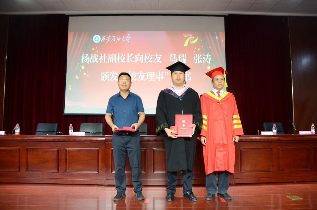 楊戰(zhàn)社副校長向高等學(xué)歷繼續(xù)教育2020屆、2021屆畢業(yè)生張濤和馬瑞分別頒發(fā)了“校友理事”聘書。