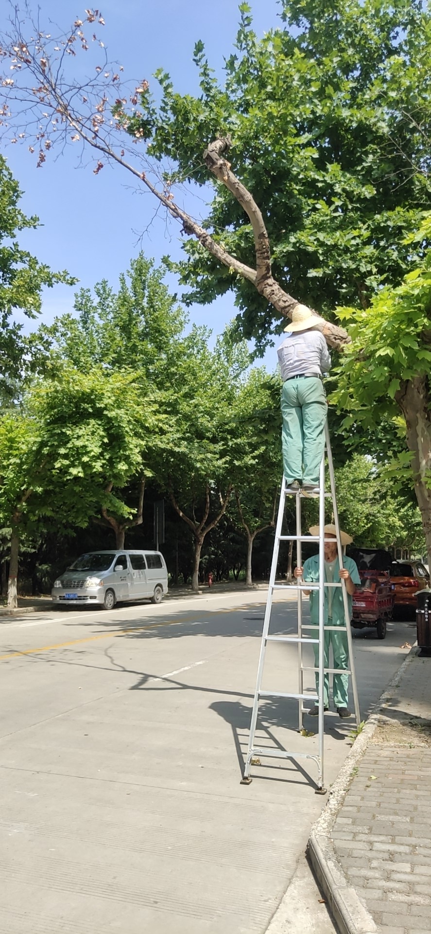 組織人員進行校園內(nèi)喬木病害枝條的修剪