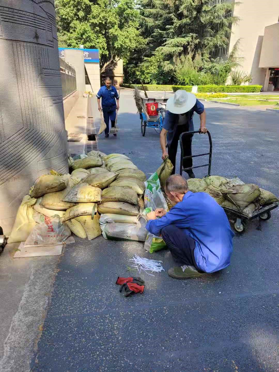 一時間,后勤黨員、干部、職工紛紛行動起來:大家各司其職,進行隱患排查和整改,防汛物資準(zhǔn)備和值守人員落實。短短的一兩天時間里,對雁塔、鄠邑兩校區(qū)所有學(xué)生公寓樓、教學(xué)樓、院系樓、實驗樓、圖書館樓、食堂、住宅樓等樓頂屋面雜物及雨水排水管管口進行清理,確保樓頂雨水排水管口暢通;對沒有學(xué)生住宿的宿舍、未使用的教室進行關(guān)窗斷電,以防雨水進入樓內(nèi)引發(fā)次生傷害;對雁塔校區(qū)南門、28~30號住宅樓地下車庫、鄠邑校區(qū)地下車庫等低洼重點區(qū)域的防汛物資進行檢查,對破損沙袋進行替換和更新,先后在雁塔校區(qū)補充防汛沙袋200多條,鄠邑校區(qū)新增防汛沙袋1200多條;對校園內(nèi)雨水收水井內(nèi)雜物進行清理,確保雨水井及排水管道通暢。此外,為防止大風(fēng)暴雨導(dǎo)致病枯樹枝條掉落發(fā)生危險,重點對枯枝朽木進行排查、修剪,消除安全隱患。