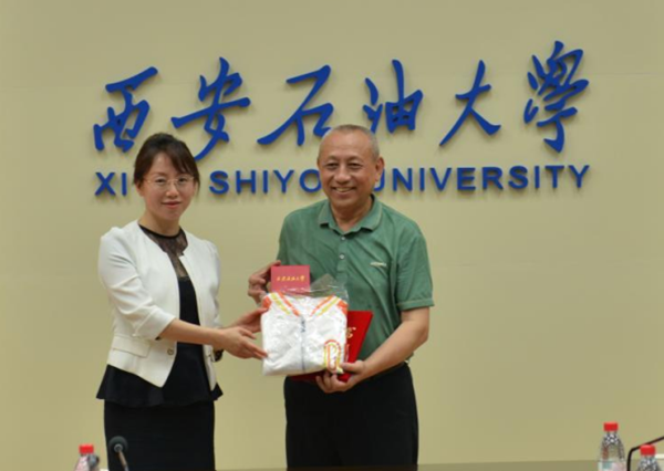 隨后,國際教育學(xué)院(絲路能源學(xué)院)院長董皓老師為李鎧先生贈送了創(chuàng)新創(chuàng)業(yè)紀(jì)念品。