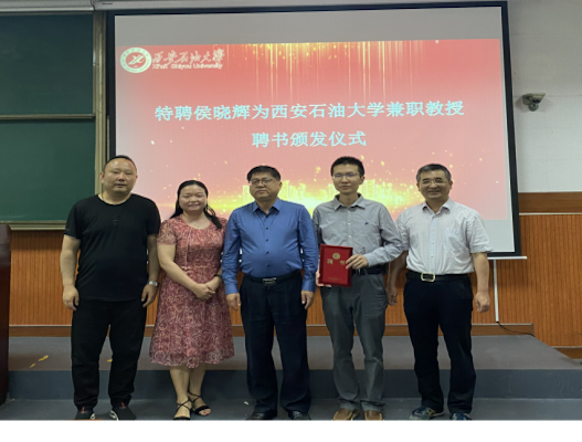 樊曉民總會(huì)計(jì)師簡(jiǎn)要介紹了西安石油大學(xué)和經(jīng)濟(jì)管理學(xué)院的發(fā)展現(xiàn)狀。他談到,侯曉輝教授能加入我校經(jīng)濟(jì)管理學(xué)院做兼職教授是對(duì)學(xué)校尤其是經(jīng)濟(jì)管理學(xué)院的積極支持,將大幅提升學(xué)校管理類學(xué)科建設(shè)水平,增強(qiáng)人才培養(yǎng)質(zhì)量。樊曉民總會(huì)計(jì)師為侯曉輝教授頒發(fā)了兼職教授聘書(shū)。