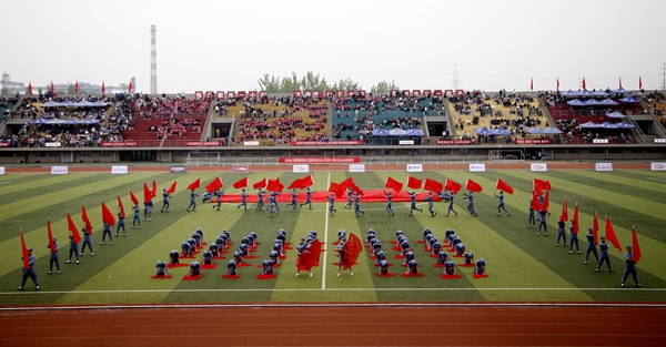 副校長(zhǎng)、校體育運(yùn)動(dòng)委員會(huì)主任陳軍斌致開幕辭。他首先代表學(xué)校向運(yùn)動(dòng)會(huì)的開幕致以熱烈祝賀,向?yàn)楸敬芜\(yùn)動(dòng)會(huì)付出辛勤勞動(dòng)的教職員工和同學(xué)們表示衷心的感謝。他談到,長(zhǎng)期以來(lái),我校高度重視體育工作,始終堅(jiān)持“以人為本,健康第一”的體育教育思想,全面落實(shí)“健康教育、終身體育”的體育教學(xué)理念,充分發(fā)揮體育在學(xué)生成長(zhǎng)成才和全面發(fā)展中的重要作用,營(yíng)造了良好的校園體育活動(dòng)氛圍。在過(guò)去的兩年里,學(xué)校各項(xiàng)體育競(jìng)賽活動(dòng)蓬勃開展,我校學(xué)子在眾多體育賽事中取得了優(yōu)異成績(jī),為學(xué)校贏得了榮譽(yù)。他希望望全體運(yùn)動(dòng)員遵守比賽規(guī)則,服從裁判,奮力拼搏,賽出水平,賽出風(fēng)格,盡情體驗(yàn)“更快、更高、更強(qiáng)”的奧運(yùn)精神;全體裁判員在賽場(chǎng)上客觀公正,嚴(yán)格執(zhí)法;希望全體工作人員積極工作,熱情服務(wù),保證運(yùn)動(dòng)會(huì)順利舉行。