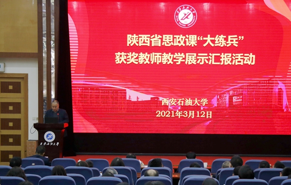為深入學(xué)習(xí)貫徹習(xí)近平總書(shū)記在學(xué)校思想政治理論課教師座談會(huì)上的重要講話精神,促進(jìn)思政課程和課程思政有機(jī)融合,3月12日下午,我校在雁塔校區(qū)學(xué)術(shù)報(bào)告廳舉辦首場(chǎng)陜西省思政課“大練兵”獲獎(jiǎng)教師教學(xué)展示匯報(bào)活動(dòng)。校黨政領(lǐng)導(dǎo)賽云秀、張木、陳軍斌、程永清出席活動(dòng)。馬克思主義學(xué)院左玲、石少虎、程麗玥、鄭偉四位思政課“大練兵”獲獎(jiǎng)教師,相關(guān)職能處室負(fù)責(zé)人,理學(xué)院、外國(guó)語(yǔ)學(xué)院等5個(gè)院系負(fù)責(zé)人和教師代表參加。程永清主持本次教學(xué)展示活動(dòng)。