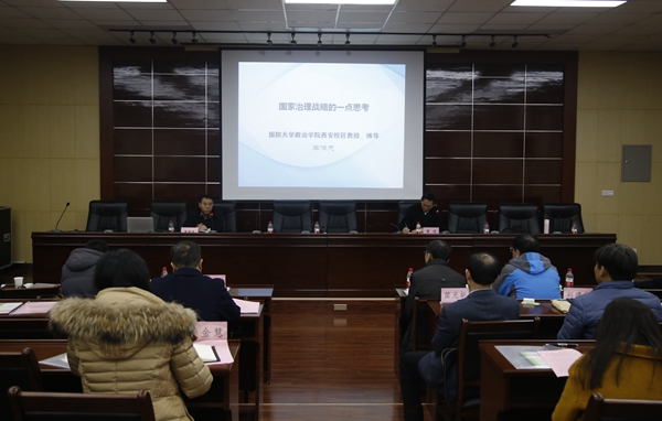 在學(xué)術(shù)研討環(huán)節(jié),國(guó)防大學(xué)政治學(xué)院西安校區(qū)李保忠教授、陜西工運(yùn)學(xué)院薛丁齊教授、西北工業(yè)大學(xué)馬克思主義學(xué)院郝保權(quán)教授、西安電子科技大學(xué)馬克思主義學(xué)院賈鋼濤教授、西安石油大學(xué)馬克思主義學(xué)院郭艷英副教授圍繞“國(guó)家治理戰(zhàn)略的一點(diǎn)思考”“從蘇共興亡的歷史教訓(xùn)看‘旗幟鮮明講政治’”“國(guó)家治理現(xiàn)代化進(jìn)程中民主集中制優(yōu)化”“準(zhǔn)確識(shí)變 科學(xué)應(yīng)變 主動(dòng)求變”“深刻認(rèn)識(shí)百年未有之大變局”等專題作了精彩的主旨報(bào)告。西安電子科技大學(xué)馬克思主義學(xué)院劉建偉教授和西安電子科技大學(xué)研究生王穎作為獲獎(jiǎng)?wù)撐淖髡叽戆l(fā)言。