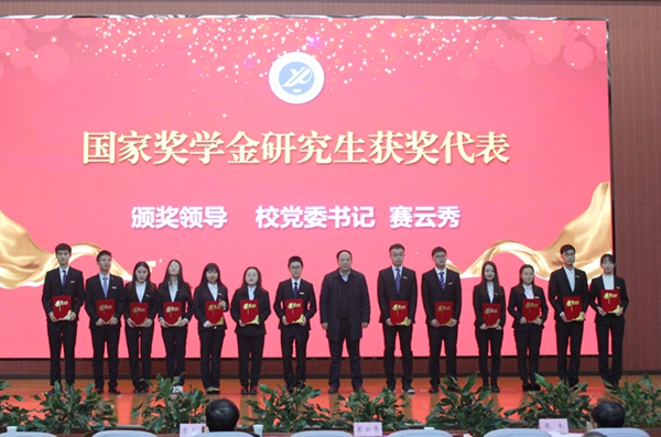 賽云秀書(shū)記為獲得2020年國(guó)家獎(jiǎng)學(xué)金的本科生、研究生代表以及2020年校級(jí)“十佳大學(xué)生”稱(chēng)號(hào)的學(xué)生頒發(fā)榮譽(yù)證書(shū)。