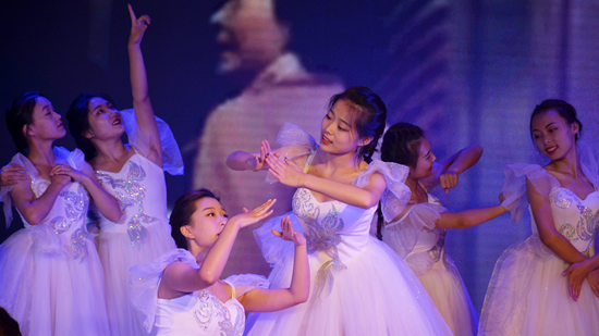 節(jié)目全長38分鐘,分為四個部分。舞蹈《一葷一素》講述了一個感人的親情故事,海味山珍比不過一葷一素,油鹽醬醋是母親細(xì)密的叮囑,世間最溫暖的就是親情;舞蹈《映山紅》用柔美細(xì)膩的舞蹈、悅耳動聽的旋律詮釋了人民群眾對紅軍的無限熱愛與不舍之情以及對美好未來的憧憬和向往;朗誦《不忘初心 共繪西石大藍(lán)圖》用聲音弘揚(yáng)校風(fēng)、講述校史、傳遞時代精神,表達(dá)了我校學(xué)子不忘初心、努力拼搏的決心;音樂系主任程輝演唱的歌曲《跟你走》,表達(dá)了對黨和國家的熱愛。