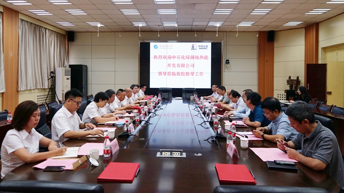 中石化綠源地?zé)崮荛_發(fā)有限公司副總工程師韓惠奇、副總經(jīng)濟師肖紅、生產(chǎn)技術(shù)部副經(jīng)理楊衛(wèi)、陜西公司副經(jīng)理張獻喻;我??萍继?、合作發(fā)展處、石油工程學(xué)院、地球科學(xué)與工程學(xué)院負責(zé)人和教師代表參加簽約儀式。