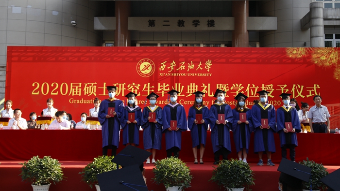 副校長李華宣讀了學(xué)?!段靼彩痛髮W(xué)關(guān)于授予常耀恒等918名研究生碩士的決定》《西安石油大學(xué)關(guān)于表彰2020年優(yōu)秀碩士學(xué)位論文作者及指導(dǎo)教師的決定》。校黨委副書記張木宣讀了學(xué)?!段靼彩痛髮W(xué)關(guān)于表彰2020屆優(yōu)秀畢業(yè)生的決定》《西安石油大學(xué)校友總會(huì)關(guān)于聘任2020屆年級(jí)校友理事的決定》。校領(lǐng)導(dǎo)為優(yōu)秀畢業(yè)生、校友理事代表頒發(fā)證書、聘書。