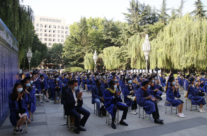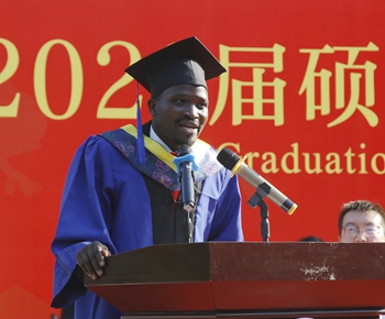 碩士研究生代表、材料科學(xué)與工程學(xué)院黨墨含同學(xué),留學(xué)生代表、來自烏干達(dá)的石油工程學(xué)院羅納德同學(xué)作了發(fā)言。