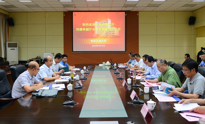 劉建林副廳長指出,西安石油大學(xué)“十三五”期間按照建設(shè)特色鮮明的高水平教學(xué)研究型大學(xué)的目標(biāo),緊緊圍繞學(xué)校中心工作,聚精會神搞建設(shè),改革創(chuàng)新謀發(fā)展,重點突破,成績顯著。同時就學(xué)校改革建設(shè)發(fā)展過程中遇到的難點和困難,同與會領(lǐng)導(dǎo)進(jìn)行了深入分析與研究,表示省教育廳將給予學(xué)校一如既往的支持和關(guān)心。他強(qiáng)調(diào),西安石油大學(xué)作為西北地區(qū)惟一一所以石油石化為特色的多科性大學(xué)和陜西省高水平大學(xué)建設(shè)院校,要發(fā)揚優(yōu)良傳統(tǒng),保持良好發(fā)展勢頭,著力做好以下工作:一是繼續(xù)堅持立德樹人的根本任務(wù)不放松,不斷提高人才培養(yǎng)質(zhì)量;二是聚焦辦學(xué)有特色、發(fā)展有優(yōu)勢、工作有亮點三項要求,穩(wěn)步推進(jìn)學(xué)校高質(zhì)量發(fā)展;三是立足辦學(xué)定位,圍繞核心指標(biāo),促進(jìn)學(xué)校內(nèi)涵建設(shè),不斷提升學(xué)校的核心競爭力;四是扎實做好“六穩(wěn)”工作、落實“六?!比蝿?wù)工作要求,全力做好大學(xué)生就業(yè)工作;五是發(fā)揮學(xué)校石油石化特色優(yōu)勢,加強(qiáng)國際交流與合作,積極與“一帶一路”沿線國家圍繞能源領(lǐng)域開展科學(xué)研究、人才培養(yǎng)等合作;六是加大高層次人才的引進(jìn)和培育力度,進(jìn)一步提高學(xué)校二、三級教授比例,為學(xué)校發(fā)展提供人才保障;七是學(xué)校要圍繞人才培養(yǎng)規(guī)律、學(xué)校辦學(xué)定位、提高利用率三個方面,明確三校區(qū)功能定位,優(yōu)化學(xué)校運行機(jī)制;八是大力推進(jìn)學(xué)校后勤社會化改革,切實提高服務(wù)師生的意識和能力水平;九是毫不放松地抓緊抓實疫情常態(tài)化防控工作,始終將師生的生命安全和身體健康放在第一位,切實維護(hù)校園安全穩(wěn)定。