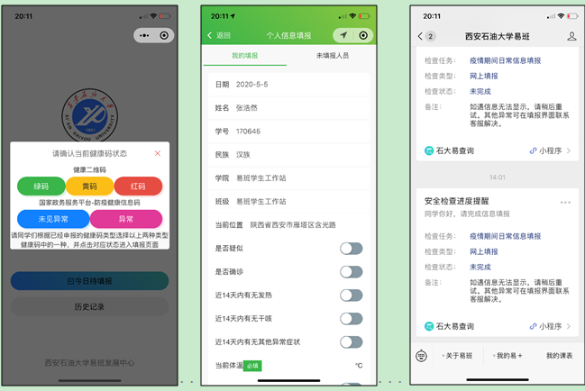 校易班發(fā)展中心組織研發(fā)團(tuán)隊(duì)僅用兩天時(shí)間,于2月2日正式研發(fā)完成了滿足學(xué)校需求的學(xué)生健康信息登記小程序,并于2月7日調(diào)試完畢正式上線使用,3月20日和4月27日又分別進(jìn)行了功能升級(jí)。信息登記小程序有效滿足了學(xué)生信息填報(bào)和學(xué)校信息收集分析的需求,極大提升了院(系)工作開(kāi)展的效率,減輕了一線輔導(dǎo)員的工作負(fù)擔(dān)。截至目前,我校自主開(kāi)發(fā)小程序日活躍度均保持在兩萬(wàn)人次以上,為我校日后利用網(wǎng)絡(luò)平臺(tái)開(kāi)展思政教育提供了流量支撐。