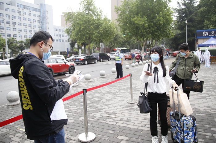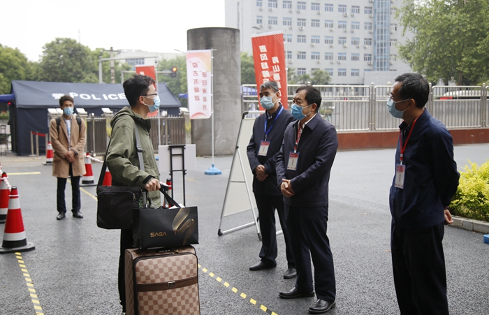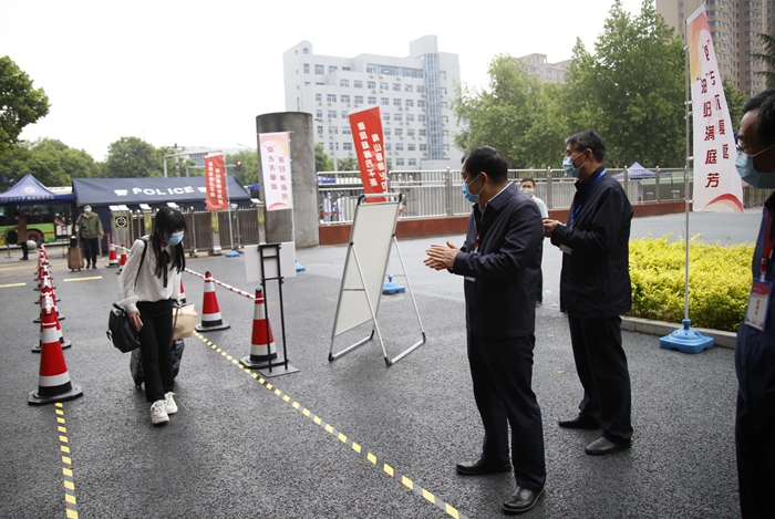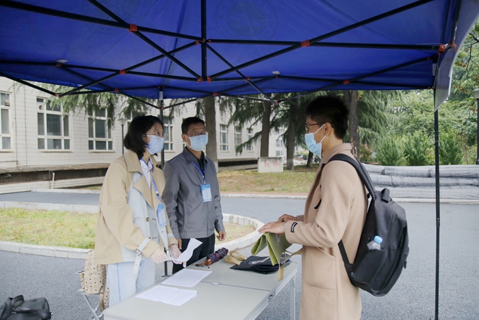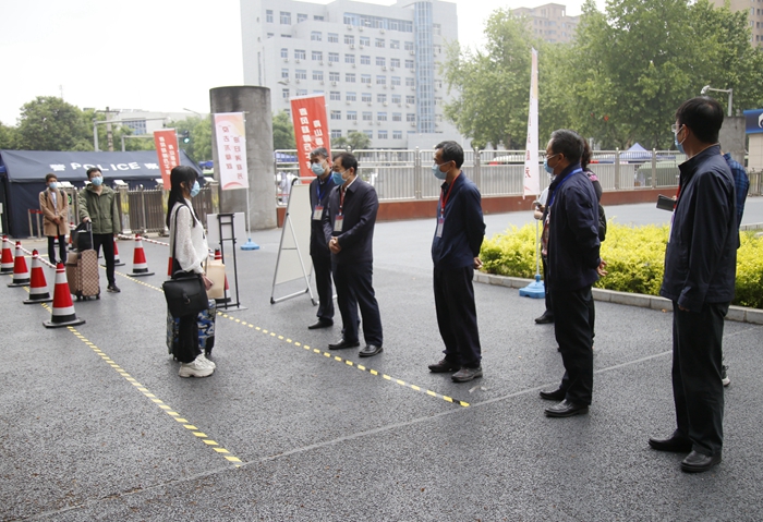 5月7日上午9時(shí),首位返校學(xué)生、經(jīng)濟(jì)管理學(xué)院研究生劉雪夢(mèng)順利抵達(dá)學(xué)校。在現(xiàn)場(chǎng)工作人員的指引下,劉雪夢(mèng)依次完成了更換口罩、測(cè)量體溫、行李和手部消毒、核查健康碼(綠碼)、身份核實(shí)等流程后順利進(jìn)入校園。校黨政領(lǐng)導(dǎo)賽云秀、李天太、張木、李華、蘇文甫、程永清先后到報(bào)到區(qū)迎接返校同學(xué),校領(lǐng)導(dǎo)與同學(xué)們親切交談,對(duì)返校同學(xué)表示歡迎,深入了解大家的思想狀況、身體狀況、假期學(xué)習(xí)生活、論文撰寫情況、就業(yè)情況。校領(lǐng)導(dǎo)鼓勵(lì)同學(xué)們堅(jiān)定戰(zhàn)勝疫情的信心,嚴(yán)格落實(shí)學(xué)校、學(xué)院各項(xiàng)疫情防控措施,同時(shí)要珍惜最后的校園時(shí)光,順利完成學(xué)業(yè)任務(wù)。
