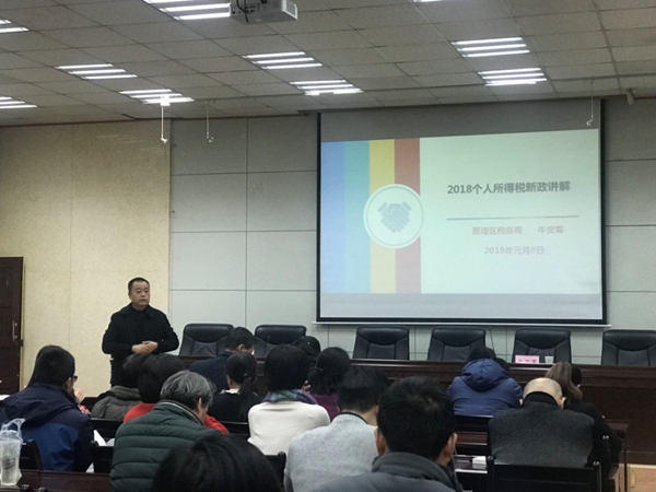 程永清副校長(zhǎng)首先代表學(xué)校對(duì)牛所長(zhǎng)一行的到來(lái)表示歡迎,對(duì)雁塔區(qū)稅務(wù)局長(zhǎng)期以來(lái)對(duì)學(xué)校工作的支持表示感謝。他談到,此次宣講會(huì)是保障個(gè)人所得稅新政精準(zhǔn)落地,讓廣大教職工及時(shí)享受稅收紅利的重要途徑。個(gè)人所得稅改革是關(guān)乎人民切身利益的重要舉措,是黨中央、國(guó)務(wù)院著眼推動(dòng)經(jīng)濟(jì)高質(zhì)量發(fā)展,建設(shè)現(xiàn)代化經(jīng)濟(jì)體系,實(shí)現(xiàn)社會(huì)公平正義,讓改革發(fā)展成果更多更公平惠及全體人民作出的一項(xiàng)重大決策,對(duì)財(cái)稅改革、經(jīng)濟(jì)發(fā)展、社會(huì)進(jìn)步都具有十分重要的意義。