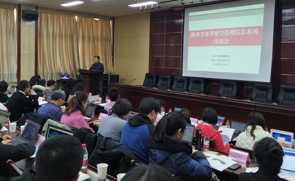 12月12日下午,陜西省來華留學(xué)管理信息系統(tǒng)培訓(xùn)會在我校雁塔校區(qū)第五會議室召開。陜西省教育廳國際合作與交流處副處長郭宏毅主持會議,教育部來華留學(xué)管理信息系統(tǒng)培訓(xùn)專家及陜西省招收來華留學(xué)生的39所高校的80余名代表參加會議。