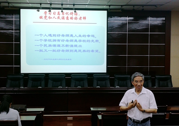 國(guó)家級(jí)教學(xué)名師、西安交通大學(xué)馮博琴教授作了題為《淺談?wù)局v臺(tái)的責(zé)任和藝術(shù)》的講座。他表示,我們廣大教師要學(xué)習(xí)習(xí)近平總書記講話,做黨和人民滿意的好老師。教師要以為人師表、教書育人為本,在課堂教學(xué)中要著重培養(yǎng)學(xué)生的創(chuàng)新精神、提高學(xué)生的能力和素質(zhì)。馮博琴教授還就當(dāng)前大學(xué)教育教學(xué)的現(xiàn)狀和存在問(wèn)題、發(fā)展趨勢(shì)分享了自己從教五十多年來(lái)所積累的教學(xué)經(jīng)驗(yàn)和感悟。他建議大家要深入學(xué)習(xí),注重領(lǐng)域知識(shí)更新和實(shí)踐教學(xué),加強(qiáng)科學(xué)研究提高教學(xué)水平,增加學(xué)術(shù)厚度加強(qiáng)表達(dá)能力,深入淺出地表達(dá)好概念。要以站好講臺(tái)為天職,把講臺(tái)當(dāng)作教書育人、為人師表的舞臺(tái)。
