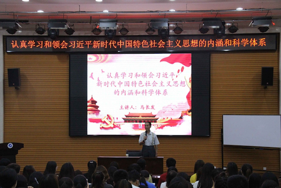 ——講座報告深入學(xué)。6月6日下午,經(jīng)濟管理學(xué)院《認真學(xué)習(xí)和領(lǐng)會習(xí)近平新時代中國特色社會主義思想的內(nèi)涵和科學(xué)體系》講座在鄠邑校區(qū)經(jīng)管人文樓118多功能廳舉辦。本次講座由79歲高齡的馬長發(fā)老師主講,學(xué)院黨員和入黨積極分子代表近300人參加。馬老師從緊緊把握習(xí)近平新時代中國特色社會主義思想提出的時代背景、緊緊抓住堅持和發(fā)展中國特色社會主義這一核心要義、緊緊抓住“八個明確”、緊緊抓住“十四個堅持”基本方略這四個“緊緊抓住”出發(fā),深刻揭示了學(xué)習(xí)和領(lǐng)會習(xí)近平新時代中國特色社會主義思想的內(nèi)涵和科學(xué)體系。
