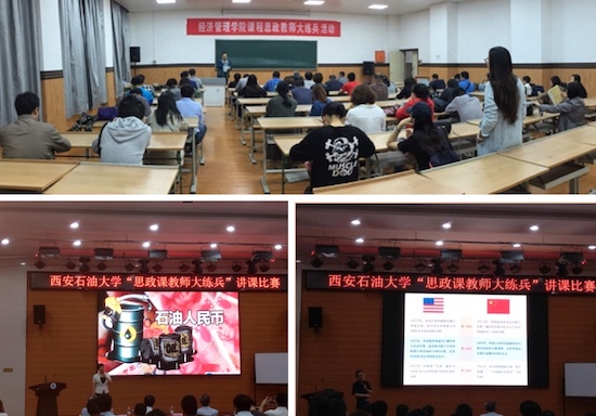 ——馬克思主義進課堂。5月9日,經(jīng)濟管理學(xué)院組織進行了“課程思政教師大練兵教學(xué)觀摩活動”,既為學(xué)生教授了豐富的專業(yè)知識,又潛移默化地傳播了正確的價值觀、世界觀,豐富了課堂。石冬蓮老師以主講課程《國際金融》中“國際貨幣體系”部分為對象進行了講述。她結(jié)合國際、國內(nèi)時政要點,對“石油美元”歷史、現(xiàn)狀及預(yù)期等熱點問題進行了精彩紛呈的講解。董春詩老師以主講課程《宏觀經(jīng)濟學(xué)》中“國民收入核算體系—GDP”部分為對象進行了講述。董老師把一組組詳實的數(shù)據(jù)和我國的經(jīng)濟發(fā)展歷程結(jié)合起來,使學(xué)生從數(shù)據(jù)中清晰地看到新時代的到來、新時代的特色和新時代的要求,董老師的講述使數(shù)據(jù)變得鮮活,課堂充滿了激情。兩位老師代表經(jīng)濟管理學(xué)院參加了6月5日在鄠邑校區(qū)經(jīng)管人文樓118室舉辦的校級“思政課教師大練兵”講課比賽,包攬前兩名,并取得了參加省賽的資格。