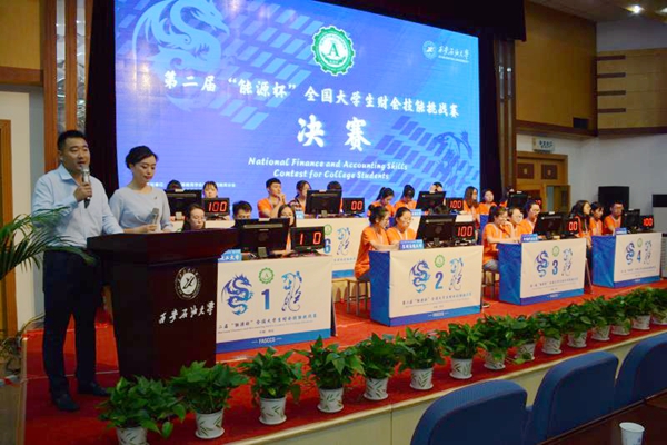 此次大賽分為會計信息化操作、案例分析和擂臺賽三個環(huán)節(jié)。來自全國27所高校的參賽選手,經(jīng)過19日上午的會計信息化操作比賽和下午的案例分析比賽,最終產(chǎn)生進入擂臺賽的十六強隊伍。20日上午,擂臺對抗賽分兩場進行,每場8支隊伍參賽。擂臺賽由我校經(jīng)濟管理學院趙選民教授擔任裁判長,陜西延長石油集團有限責任公司總會計師康永智、我校原總會計師楊恒倉、西安電子科技大學總會計師謝軍占擔任仲裁員,我校經(jīng)濟管理學院聶亦慧教授、寧宇新教授、張渭民教授等擔任裁判員。競賽組織委員會主任、我校副校長陳軍斌親臨比賽現(xiàn)場指導工作。擂臺對抗賽現(xiàn)場氣氛活躍、競爭激烈,觀眾積極參與、共同監(jiān)督。經(jīng)過定人必答題、定隊必答題、搶答題、共答題和闖關沖刺題等環(huán)節(jié),參賽選手的財會專業(yè)知識、實際操作經(jīng)驗、臨場心理素質均得到充分檢驗。