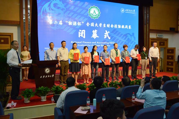 頒獎典禮上,張國才副理事長、李天太副校長為特等獎獲得者頒獎。中國石油集團石油管道工程技術研究院院長、黨委書記劉亞旭,廣東財經(jīng)大學原校長王華為一等獎獲得者頒獎。西安電子科技大學總會計師謝軍占、陜西延長石油(集團)有限責任公司總會計師康永智為二等獎獲得者頒獎。我校原總會計師楊恒倉、經(jīng)管院教授趙選民、廣州市福斯特科技有限公司董事長閆曉霞為三等獎獲得者頒獎。陜西省國稅局科研所副所長劉峰、圓通制創(chuàng)立者王民權、中國節(jié)能環(huán)保裝備股份有限公司財務總監(jiān)李強、廣州市福斯特科技有限公司總經(jīng)理楊帆為優(yōu)秀組織獎獲得單位頒獎。我校實驗室管理處處長孟開元、經(jīng)濟管理學院黨委書記閆大維、經(jīng)濟管理學院院長王君萍、教務處副處長張君濤為優(yōu)秀指導教師頒獎。