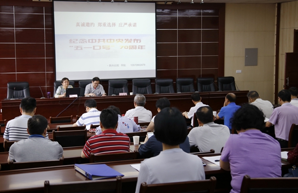 5月17日下午,我校邀請(qǐng)陜西省社會(huì)主義學(xué)院教授何虹,在雁塔校區(qū)第五會(huì)議室作了紀(jì)念“五一口號(hào)”發(fā)布七十周年的主題報(bào)告。校黨委副書記雷西合出席報(bào)告會(huì)。校統(tǒng)一戰(zhàn)線領(lǐng)導(dǎo)小組成員單位負(fù)責(zé)人,民主黨派全體成員、僑聯(lián)負(fù)責(zé)人、無黨派人士,各院系級(jí)黨組織書記和統(tǒng)戰(zhàn)委員參加了報(bào)告會(huì)。報(bào)告會(huì)由校黨委委員、統(tǒng)戰(zhàn)部部長吳復(fù)雷主持。