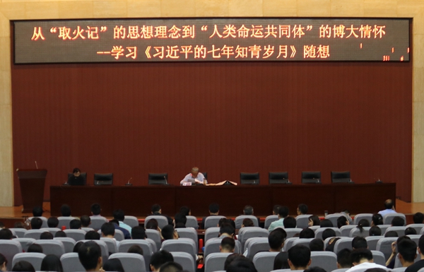 5月3日下午,學(xué)校邀請(qǐng)陜西省作家協(xié)會(huì)主席團(tuán)顧問曹谷溪先生來校作了題為《從“取火記”的思想理念到“人類命運(yùn)共同體”的博大情懷——學(xué)習(xí)< 習(xí)近平的七年知青歲月>隨想》的專題報(bào)告。全體學(xué)工干部和學(xué)生代表400余人聆聽了報(bào)告。
