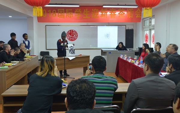 茶話會上,屈展校長向國際學生致以新春問候,詳細詢問了同學們寒假期間的學習、生活情況,并聽取了他們對學校留學生教育教學及管理方面的意見和建議。屈校長勉勵國際學生珍惜寶貴的學習機會,重視課內(nèi)學習與課外實踐,在學習和實踐中多思考,力爭提出不同見解,創(chuàng)新學習方法,取得更好成績。