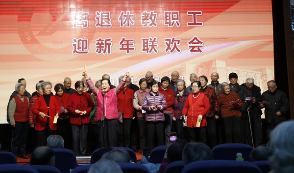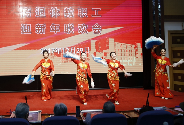 隨后,老年大學(xué)的學(xué)員們、離退休教職工、部分在職教職工為大家?guī)?lái)了精彩的文藝節(jié)目。門(mén)球之家的老同志們精神抖擻,表演的說(shuō)唱《十九大贊》表達(dá)了離退休老同志對(duì)黨的無(wú)比熱愛(ài)。老年大學(xué)合唱團(tuán)帶來(lái)的大合唱《遠(yuǎn)情》《茉莉花》《天邊的駱駝》,廣場(chǎng)舞分會(huì)帶來(lái)的舞蹈《舞蹈串燒》,葫蘆絲樂(lè)團(tuán)的聯(lián)奏《紅梅贊》《映山紅》《情深意長(zhǎng)》等節(jié)目,充分展示了老年大學(xué)的教學(xué)成果和老同志熱愛(ài)生活的精神面貌。音樂(lè)系同學(xué)還為大家演唱了《不忘初心》,體現(xiàn)了石油學(xué)子熱愛(ài)黨的深情,大家在一片歡歌笑語(yǔ)中共同迎接2018年的到來(lái)。